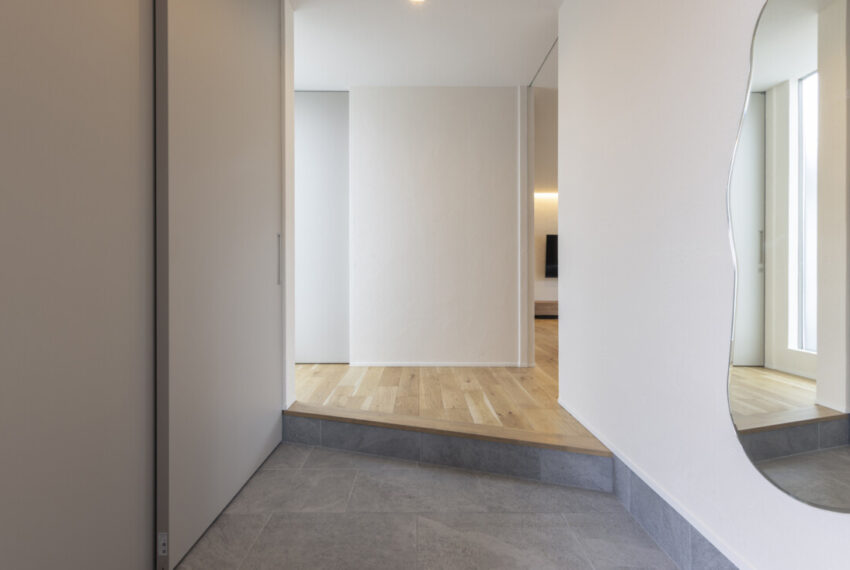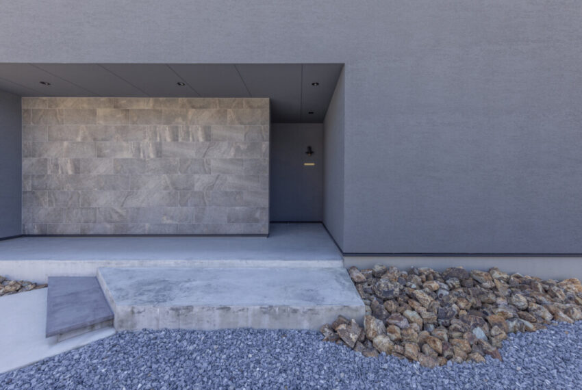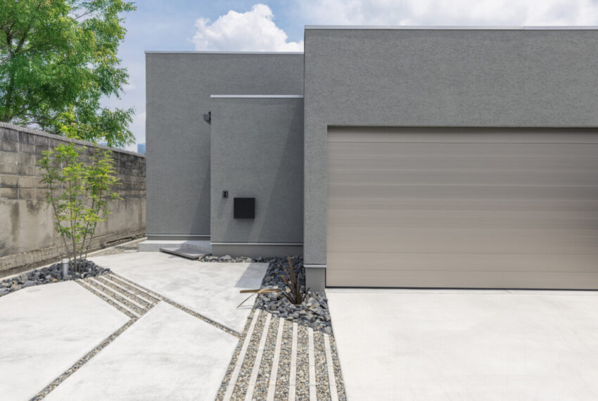 - ガレージと玄関をつなぐ、曲線が美しい家
