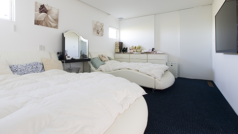 以前、厳しい暑さとひどいカビに悩まされていたというHさま。その悩みを解決するために選んだのが全館空調でした。「チェックハウスさんのシステムは大掛かりな設備も必要なく、エアコンを全室に設置するよりも経済的で合理的。ランニングコストも下がりそうだと思いました。真冬日でも家の中は27℃あって快適でした。冬用の布団や毛布を使って寝ると寒いので、処分しようと思います。快適すぎてダメになりそうです(笑)」。